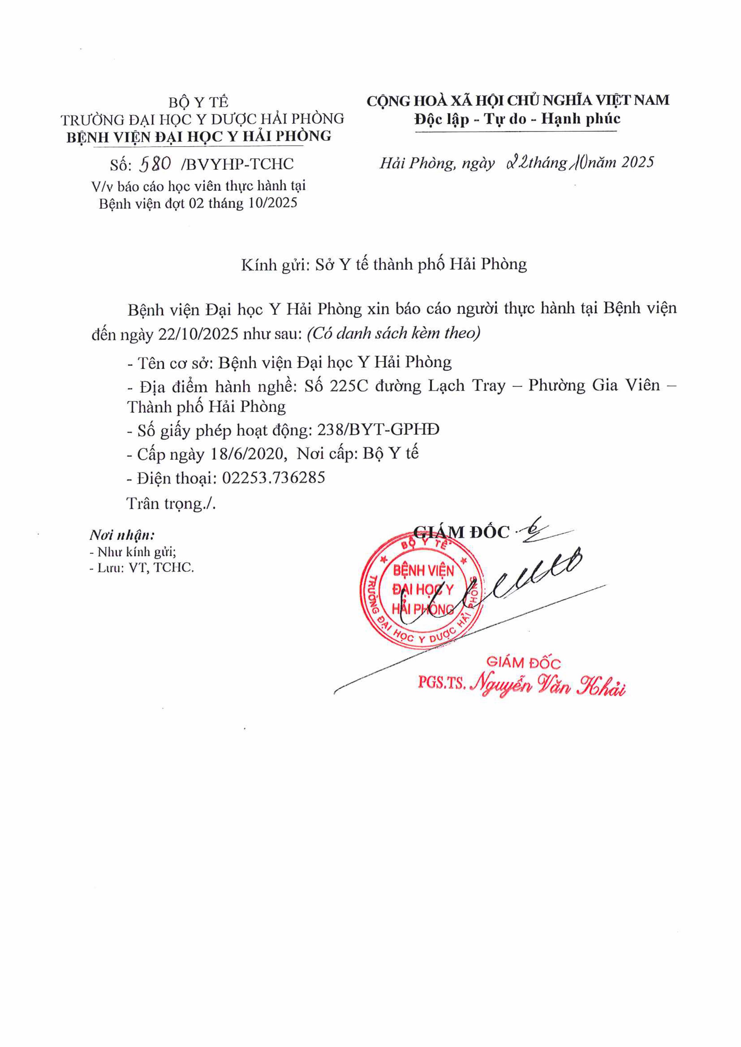 Báo cáo học viên thực hành tại BVĐHYHP đợt 2 T10.2025