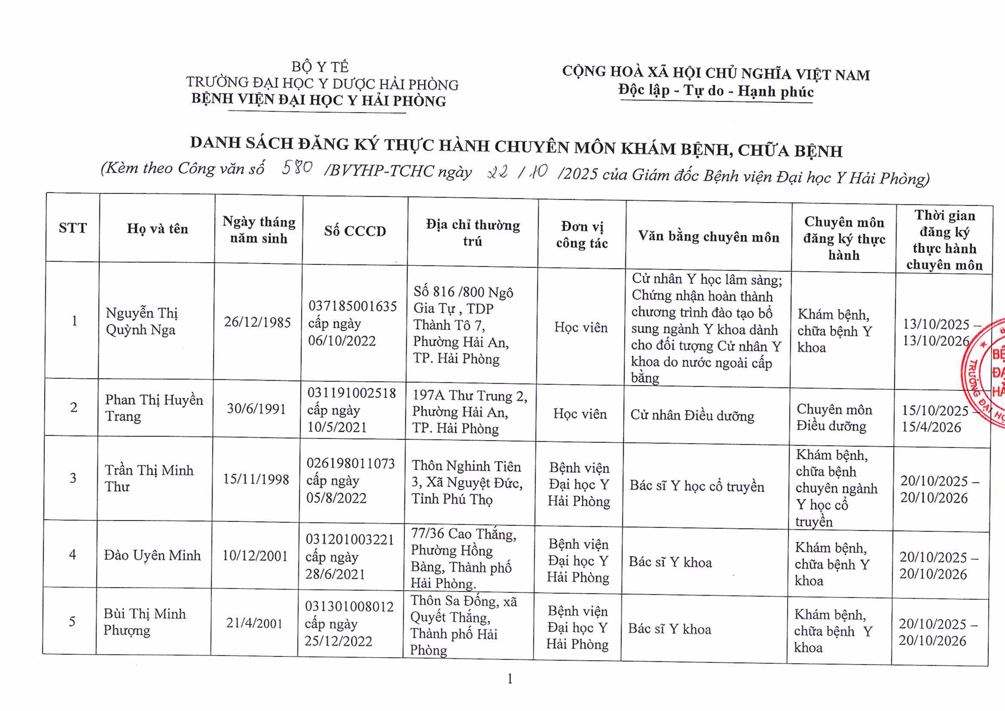 Báo cáo học viên thực hành tại BVĐHYHP đợt 3 T9.2025