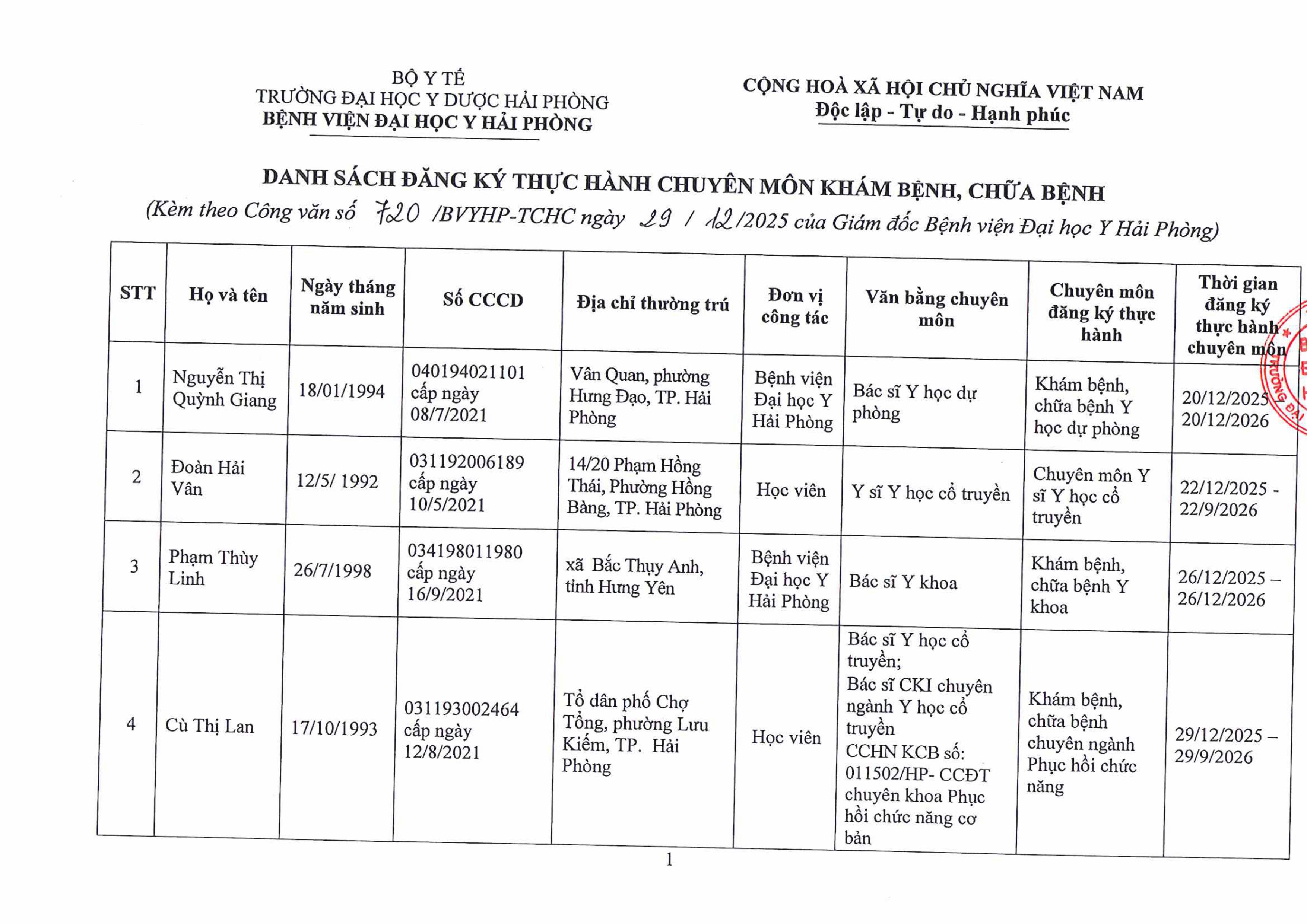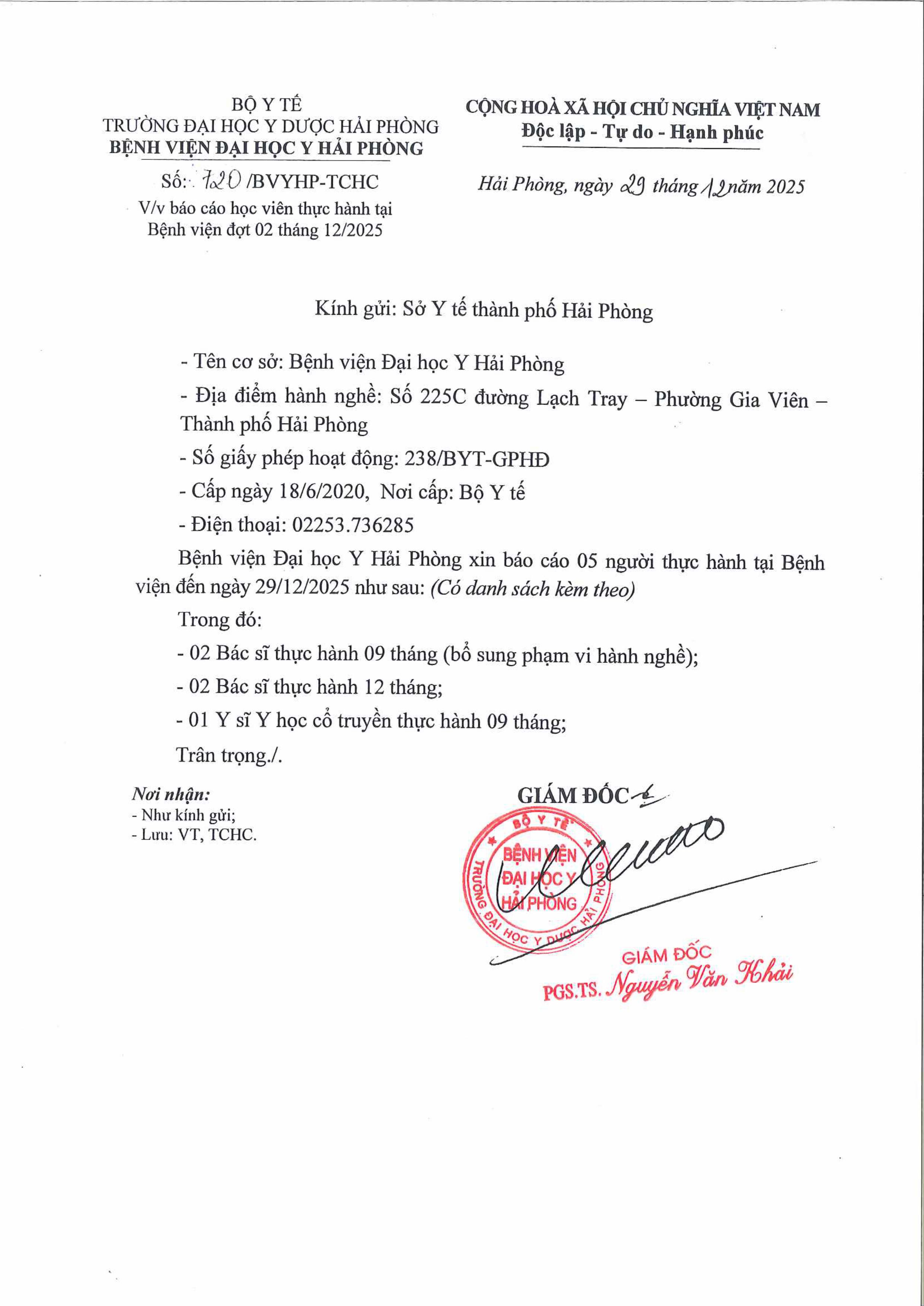 Báo cáo học viên thực hành tại BVĐHYHP đợt 2 T12.2025