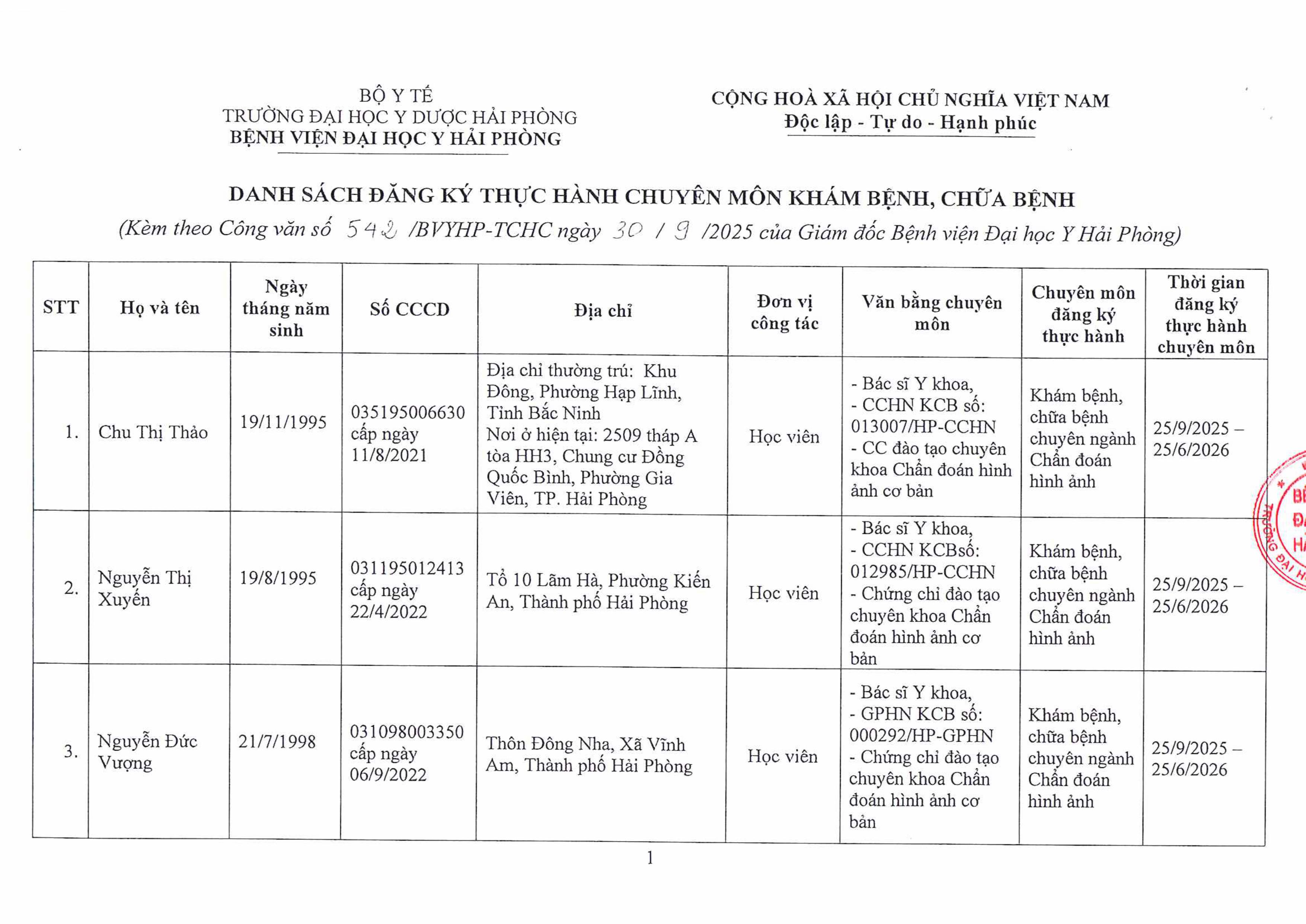 Báo cáo học viên thực hành tại Bệnh Viện Đại Học Y Hải Phòng đợt 2 T9.2025