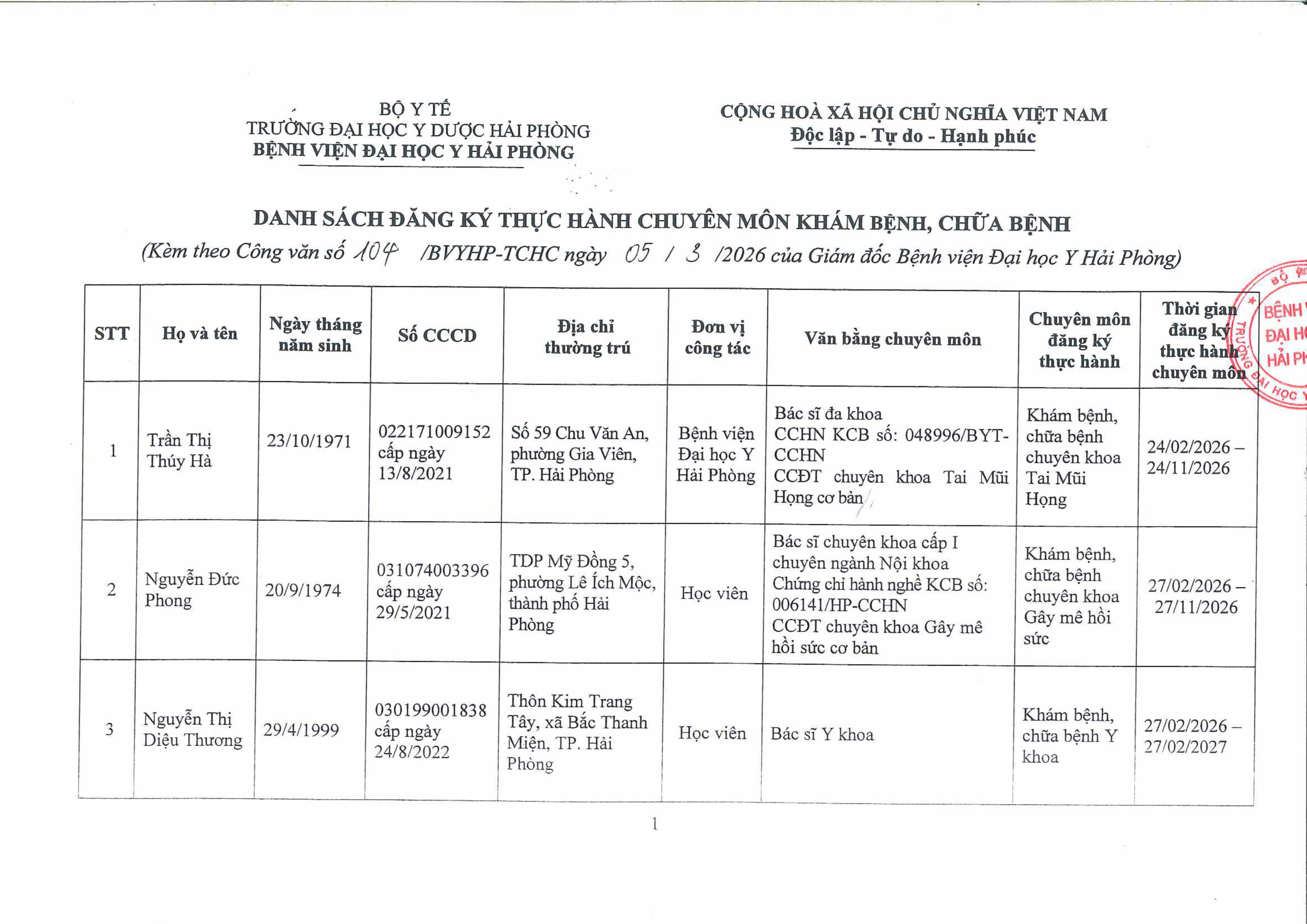 Báo cáo học viên thực hành tại Bệnh viện Đại Học Y hải Phòng đến 05.3.2026