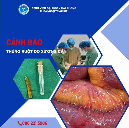 Kết quả chẩn đoán hình ảnh phát hiện: dị vật dài 5cm xuyên qua quai ruột non. Khi phẫu thuật, các bác sĩ lấy ra một mảnh xương cá, đồng thời khâu phục hồi lỗ thủng ruột. Nhờ can thiệp kịp thời, bệnh nhân hồi phục tốt và xuất viện an toàn sau 10 ngày.