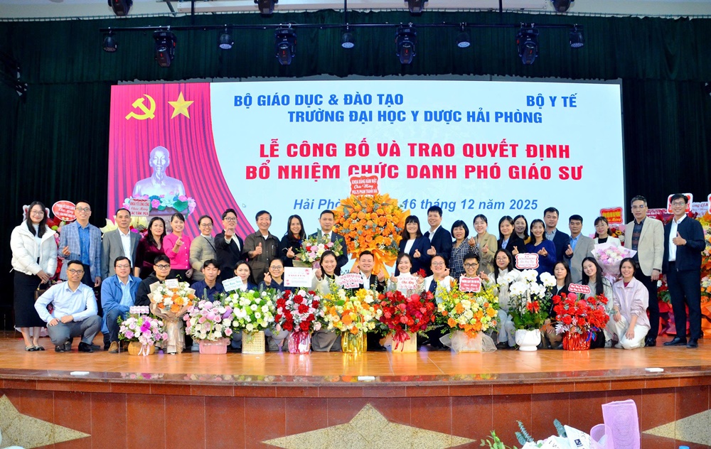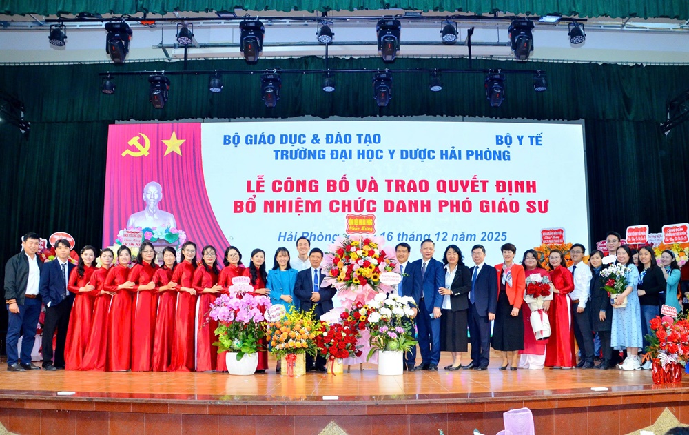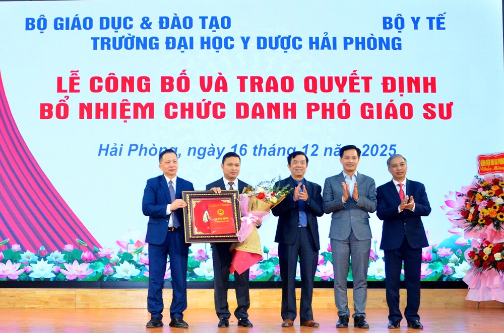 Chiều 16/12/2025, Trường Đại học Y Dược Hải Phòng long trọng tổ chức Lễ công bố và trao Quyết định bổ nhiệm chức danh Phó Giáo sư cho 05 nhà giáo, nhà khoa học có nhiều đóng góp cho sự nghiệp đào tạo và chăm sóc sức khỏe nhân dân.