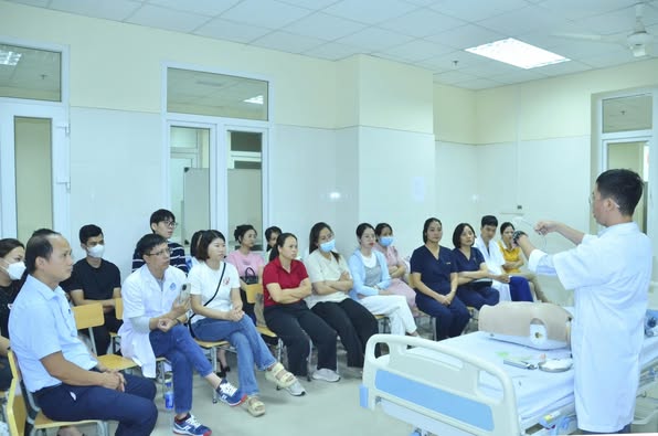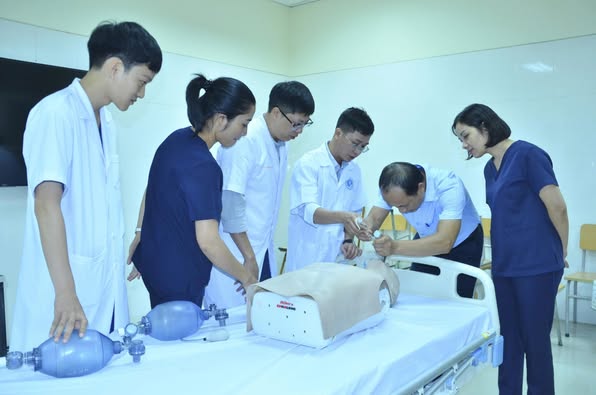 Thông qua phương pháp đào tạo kết hợp giữa lý thuyết và thực hành, các học viên đã được trực tiếp tham gia thực hành trên mô hình, được hướng dẫn bởi các giảng viên giàu kinh nghiệm. Điều này giúp nhân viên y tế không chỉ tiếp thu kiến thức mà còn ứng dụng ngay trong tình huống thực tế, tăng khả năng phản ứng nhanh và chính xác khi cấp cứu bệnh nhân.