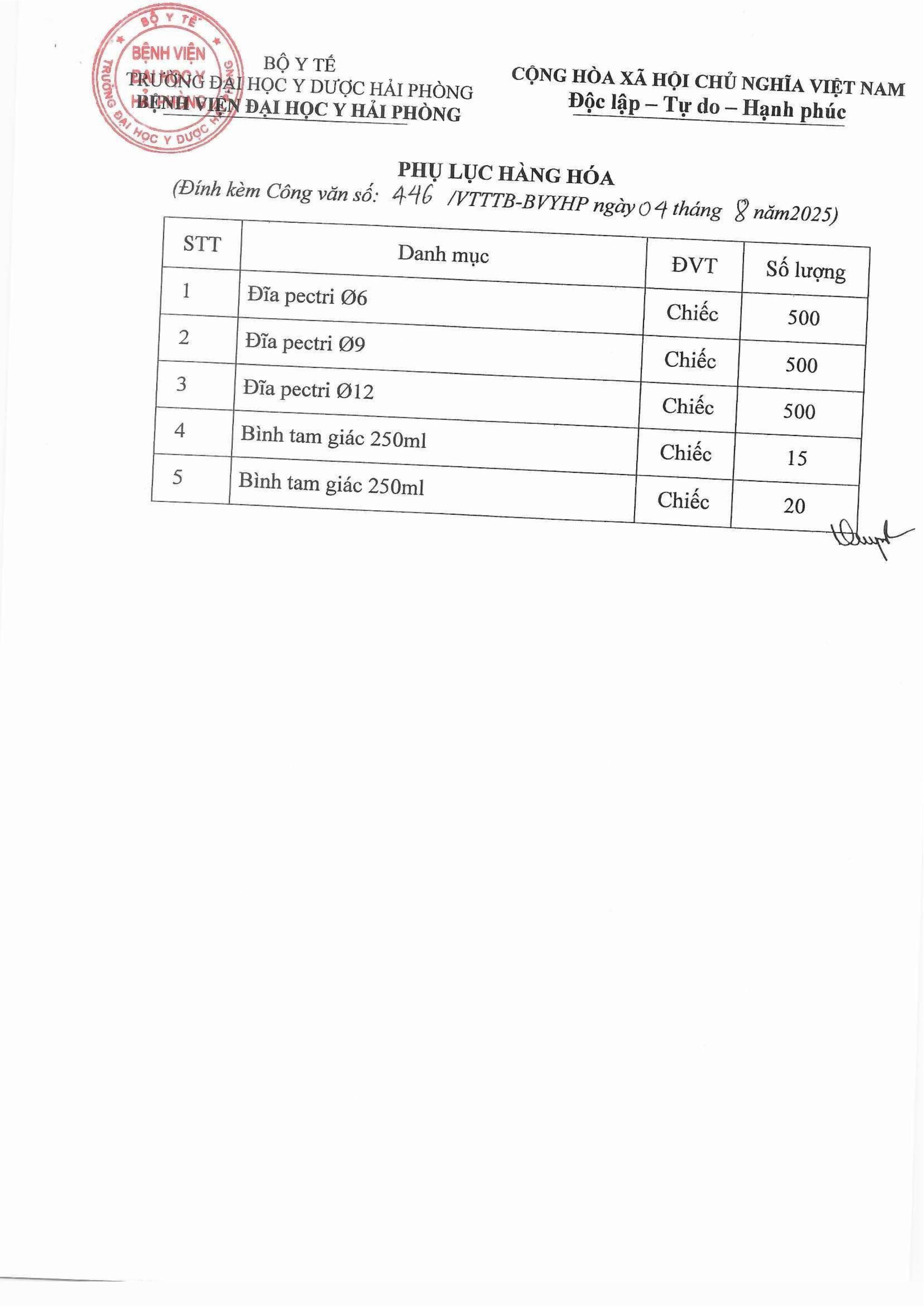 Thư mời báo giá dụng cụ vi sinh Bệnh Viện Đại Học Y Hải Phòng