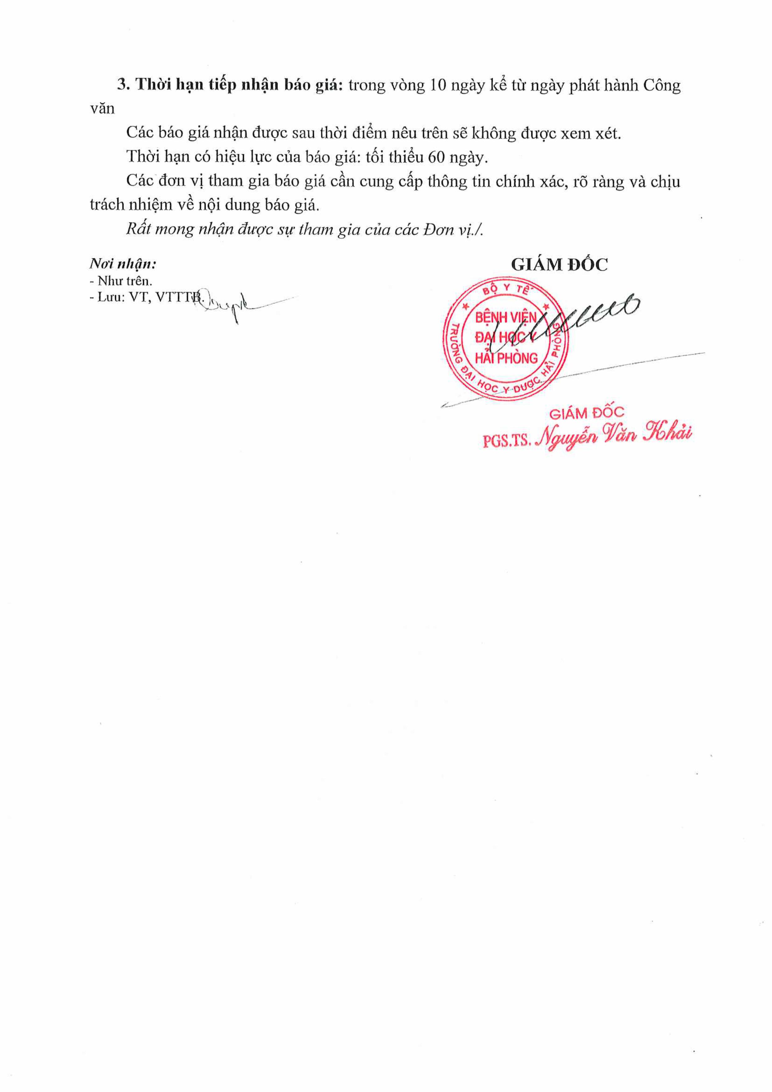 Thư mời báo giáo may trang phục cho cán bộ nhân viên đón tiếp Bệnh viện đại học Y Hải Phòng