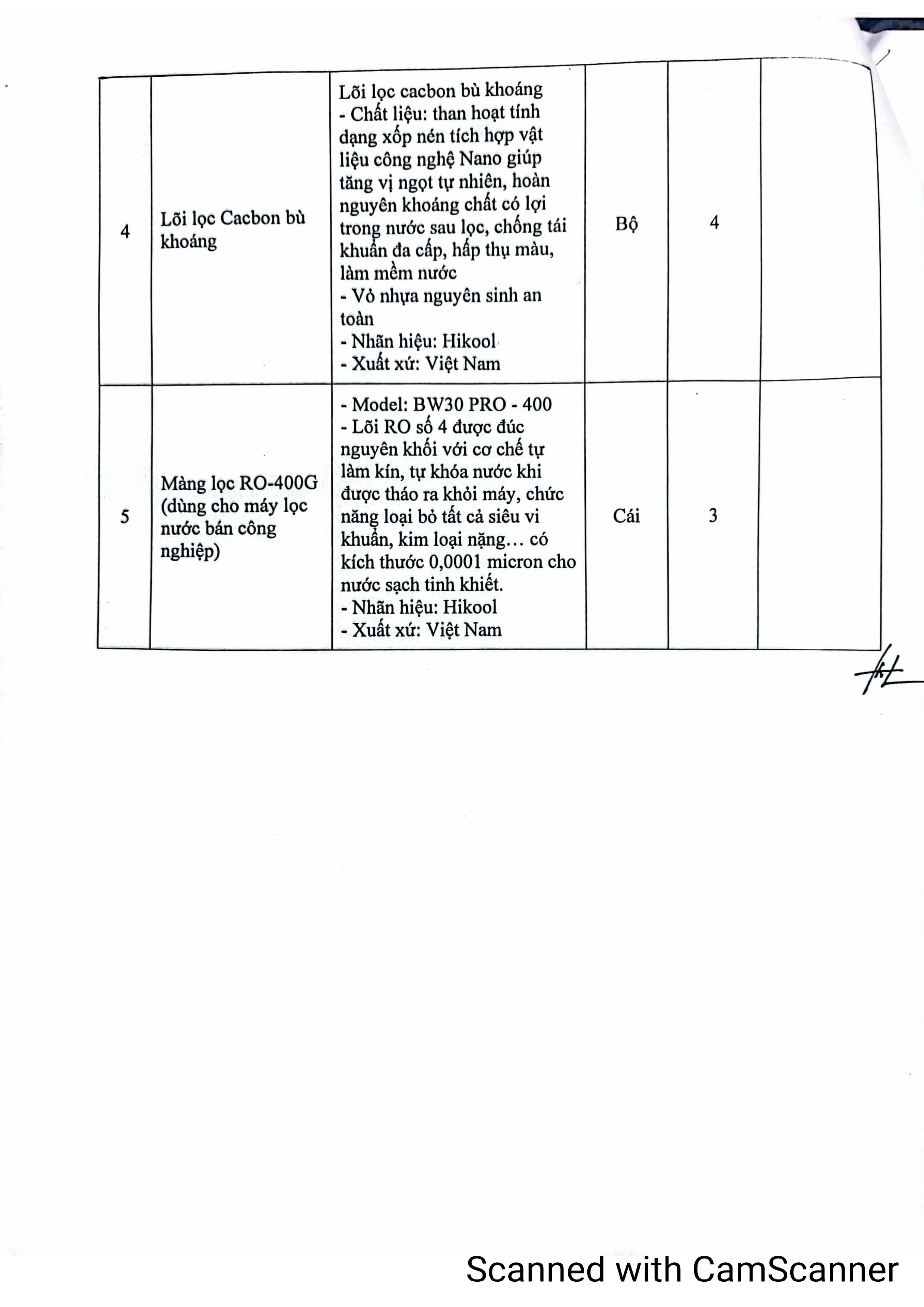 Thư mời thay thế vật tư hệ thông tiền xử lý nước RO