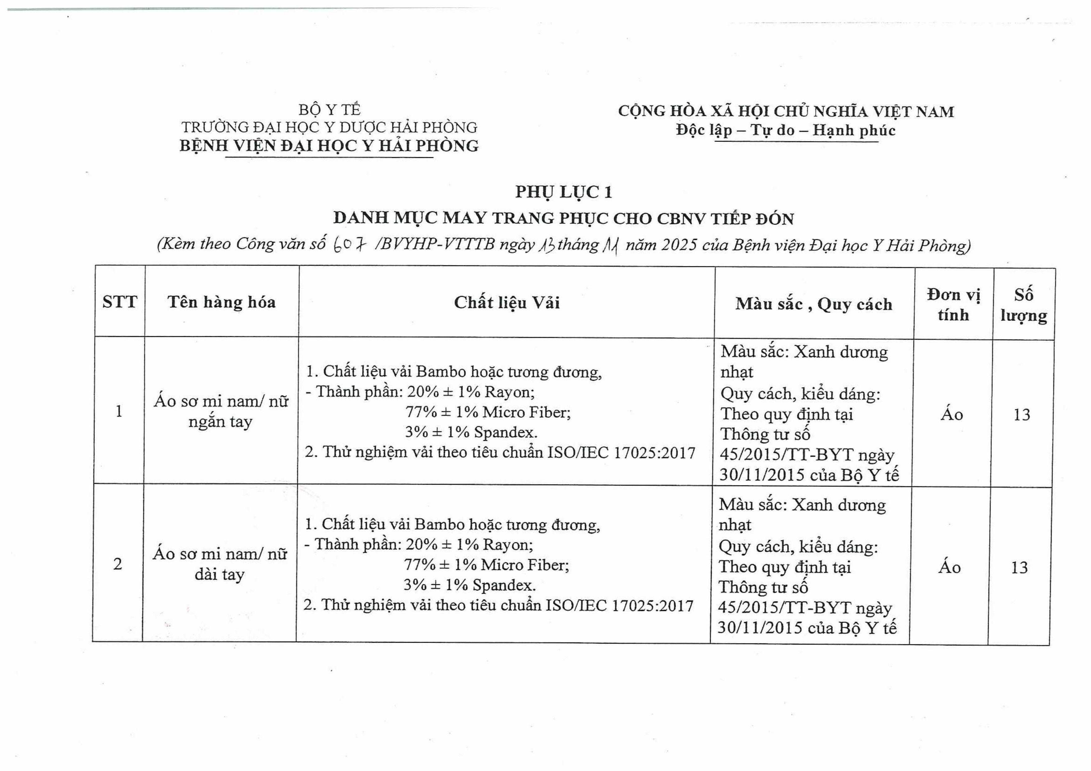 Thư mời báo giáo may trang phục cho cán bộ nhân viên đón tiếp Bệnh viện đại học Y Hải Phòng