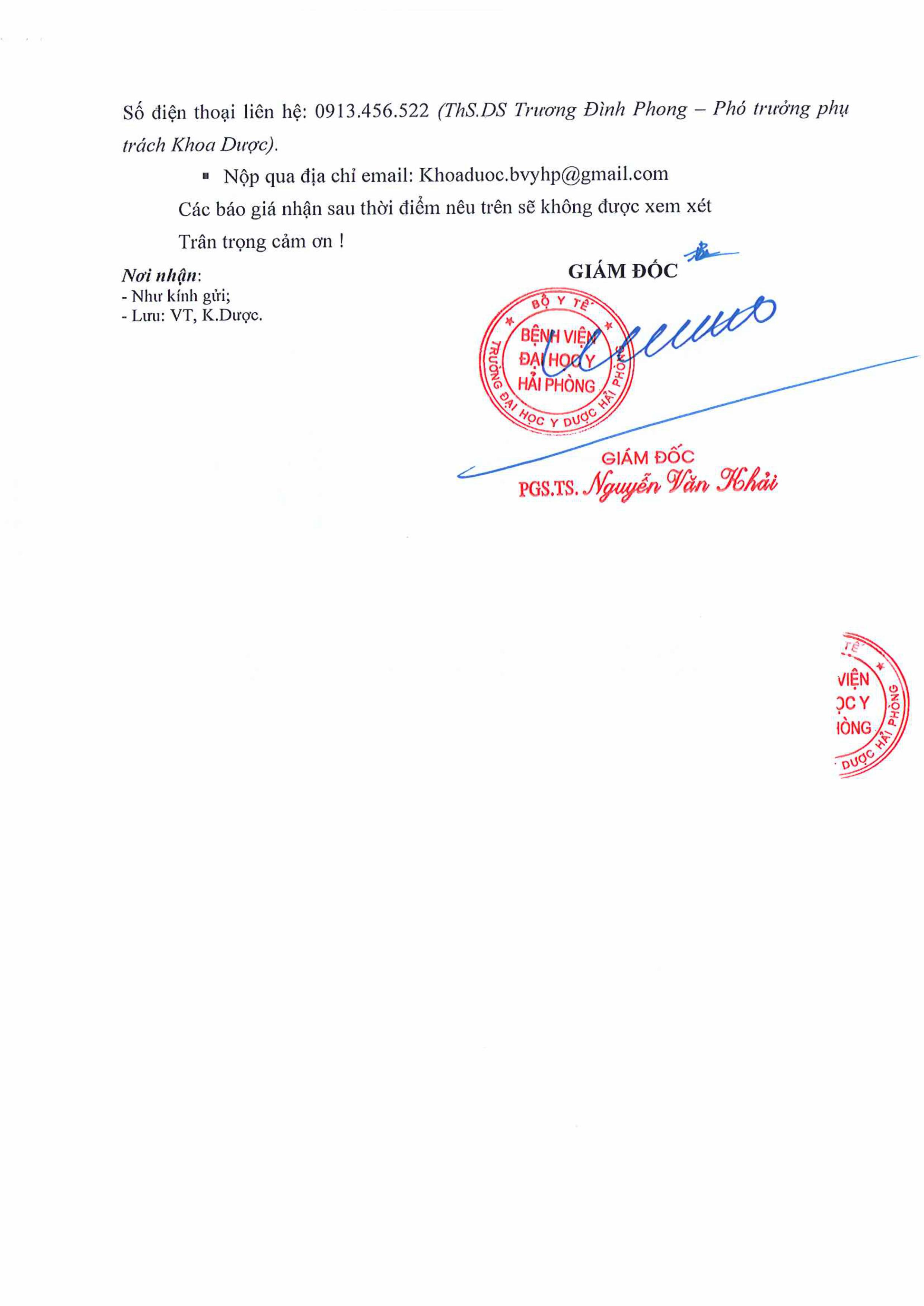 Thư mời báo giá thay lõi lọc và sửa chữa các cây lọc nước định kỳ Bệnh viện Đại Học Y Hải Phòng