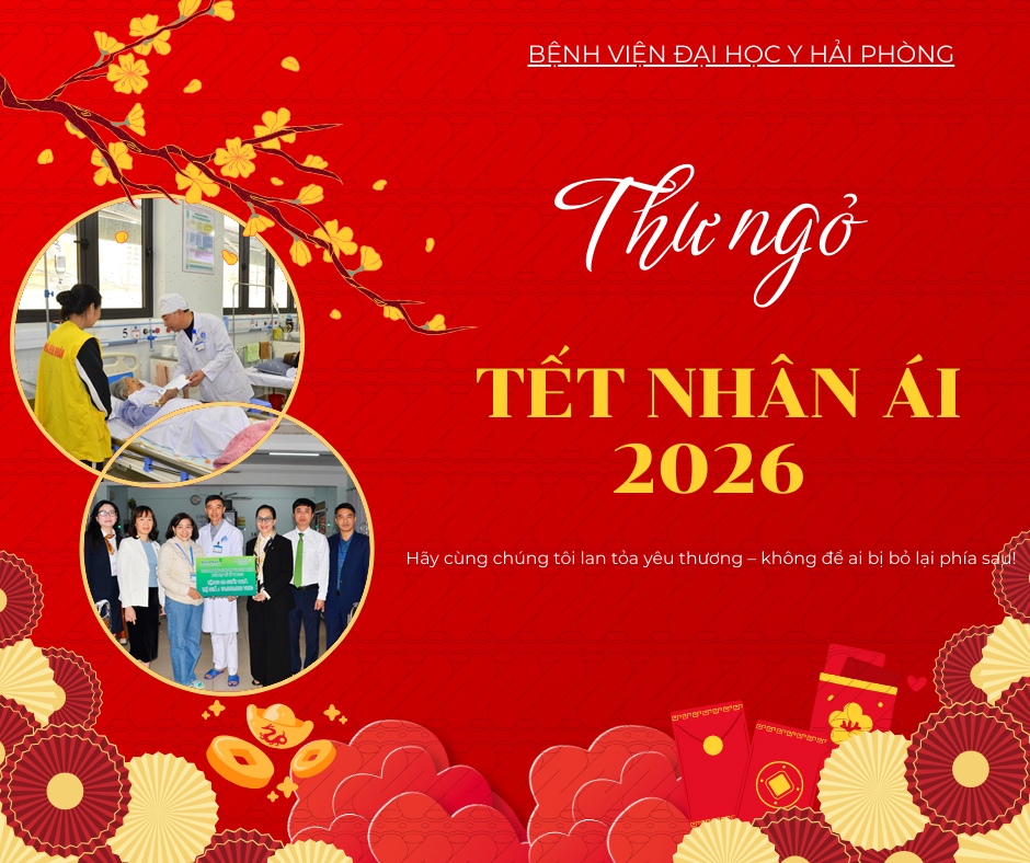 Hướng tới giá trị nhân văn sâu sắc của ngành Y và tinh thần “lá lành đùm lá rách”, Bệnh viện Đại học Y Hải Phòng dự kiến tổ chức chương trình “Tết Nhân Ái 2026” vào sáng thứ Bảy, ngày 14/02/2026, tại tầng 10 – nhà D, Bệnh viện Đại học Y Hải Phòng.