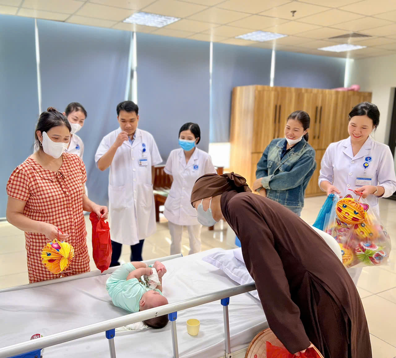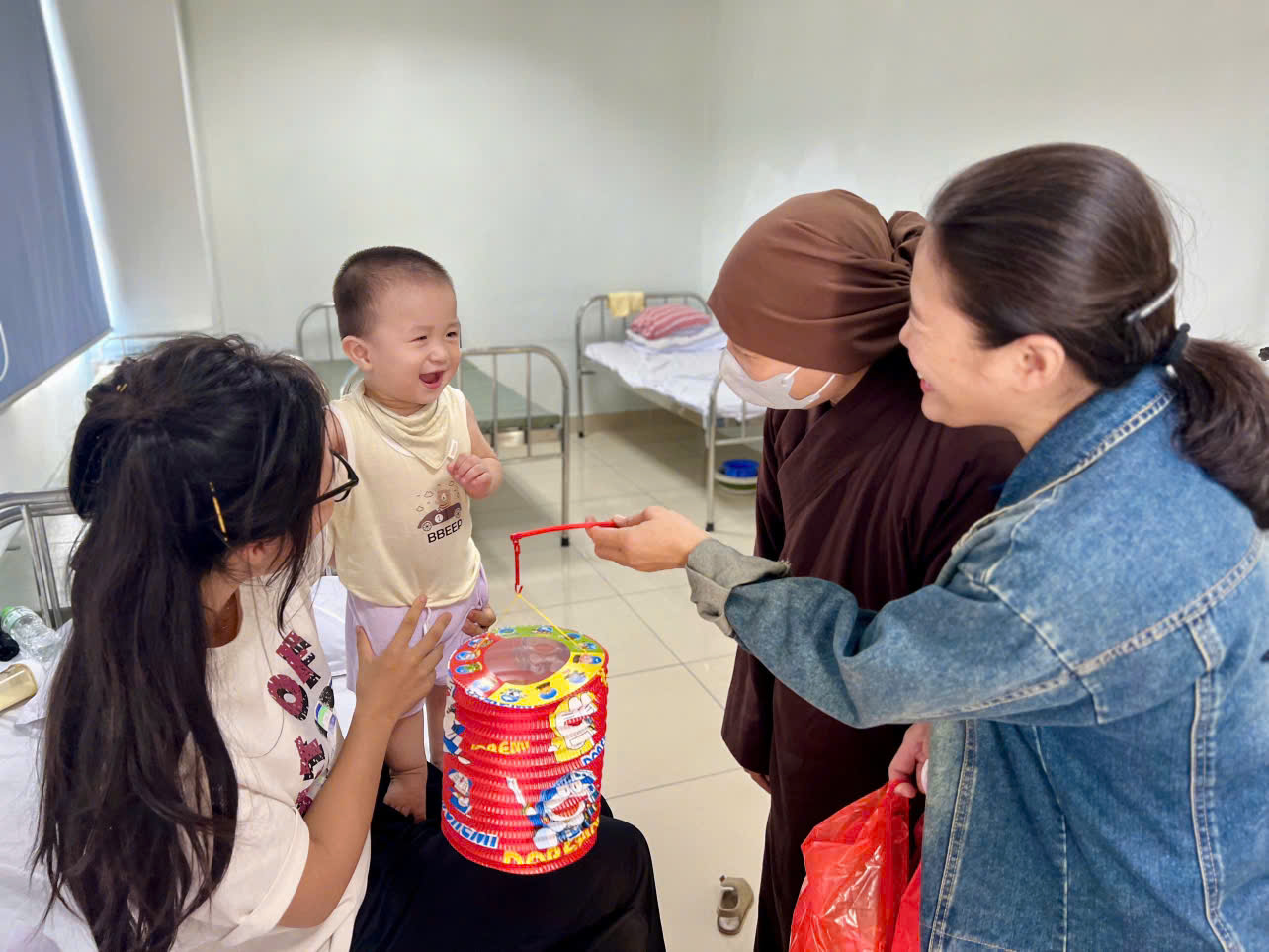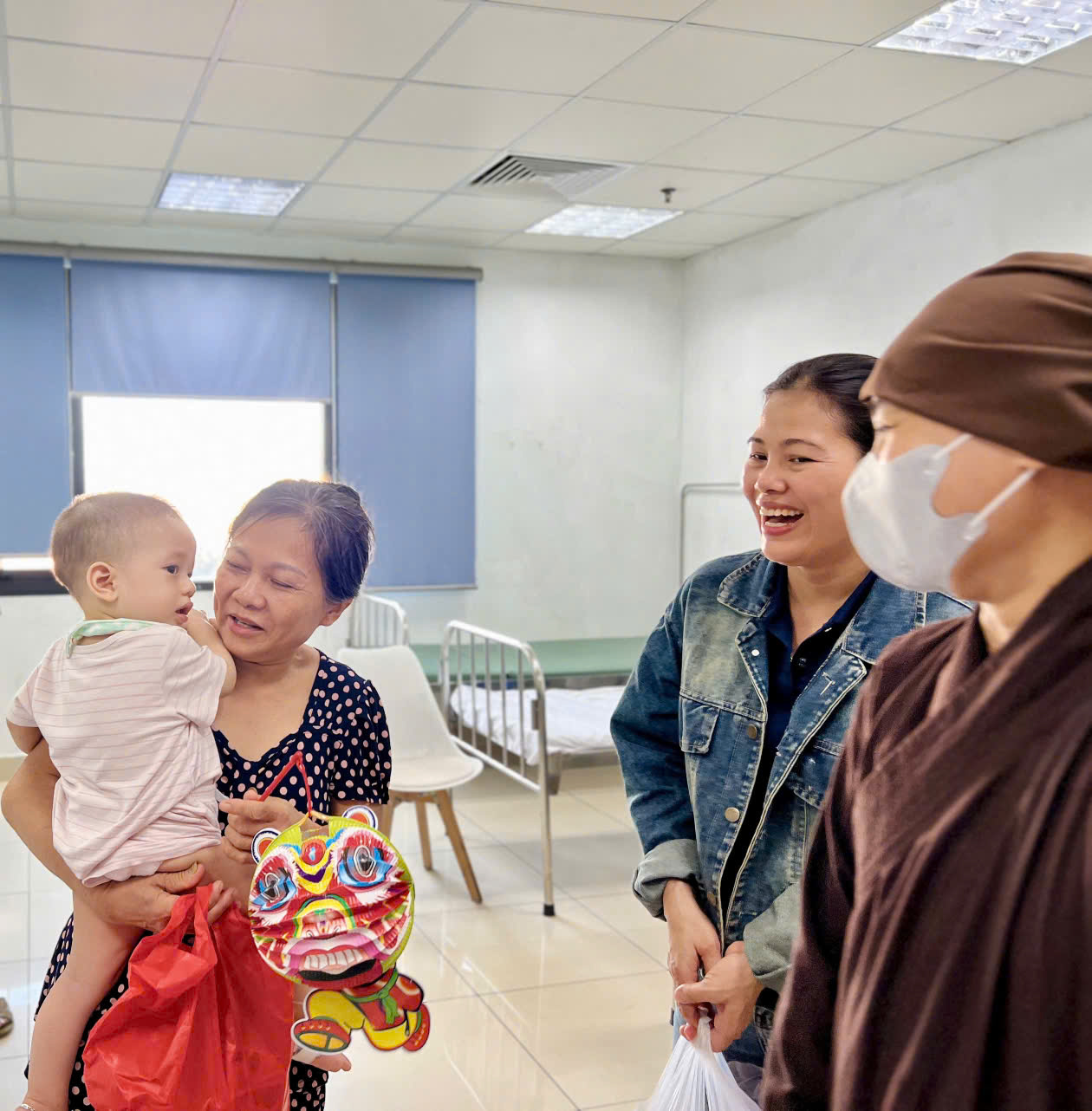 Trong không khí ấm áp, các thành viên nhóm thiện nguyện đã trao tận tay các bé những phần quà nhỏ xinh, kèm theo những lời động viên, khích lệ tinh thần các bệnh nhi tại Bệnh viện.
