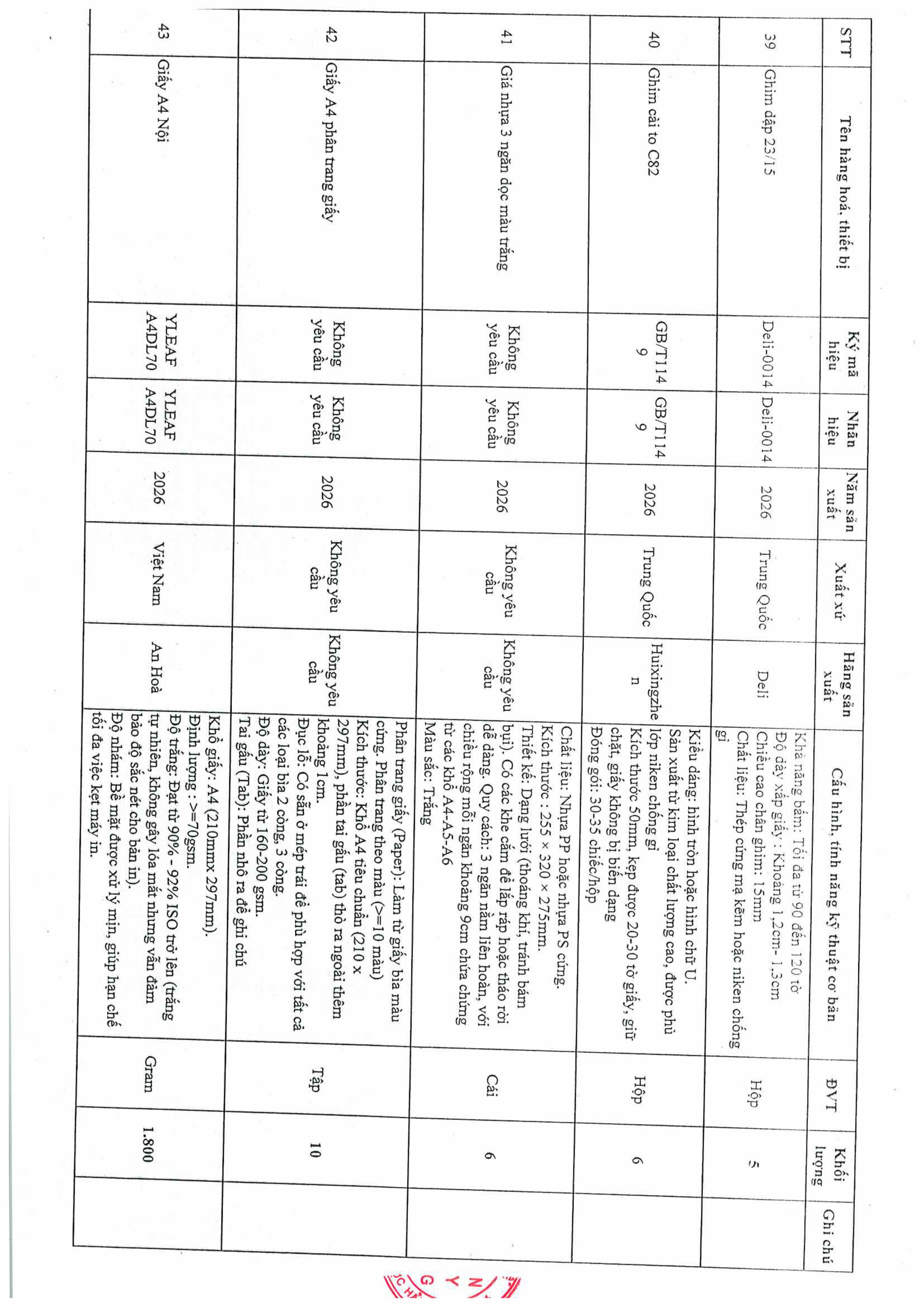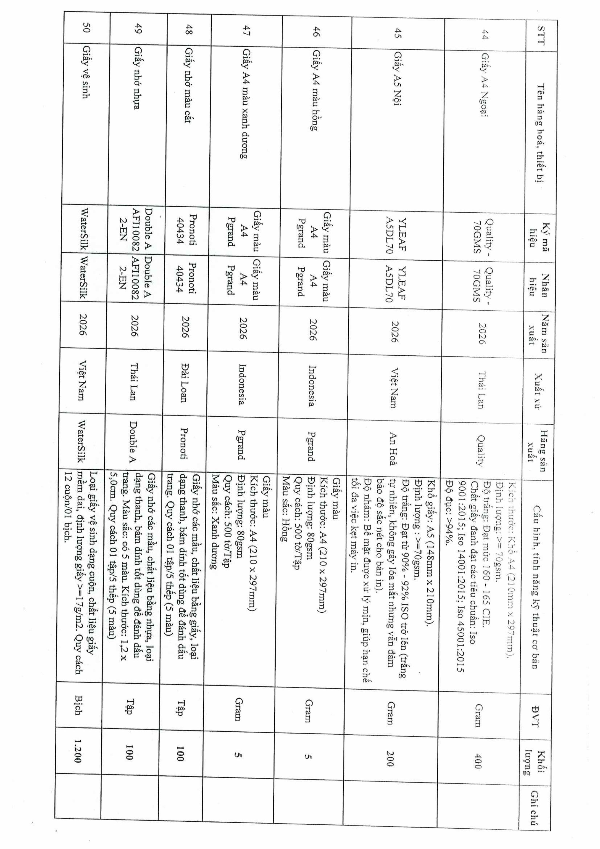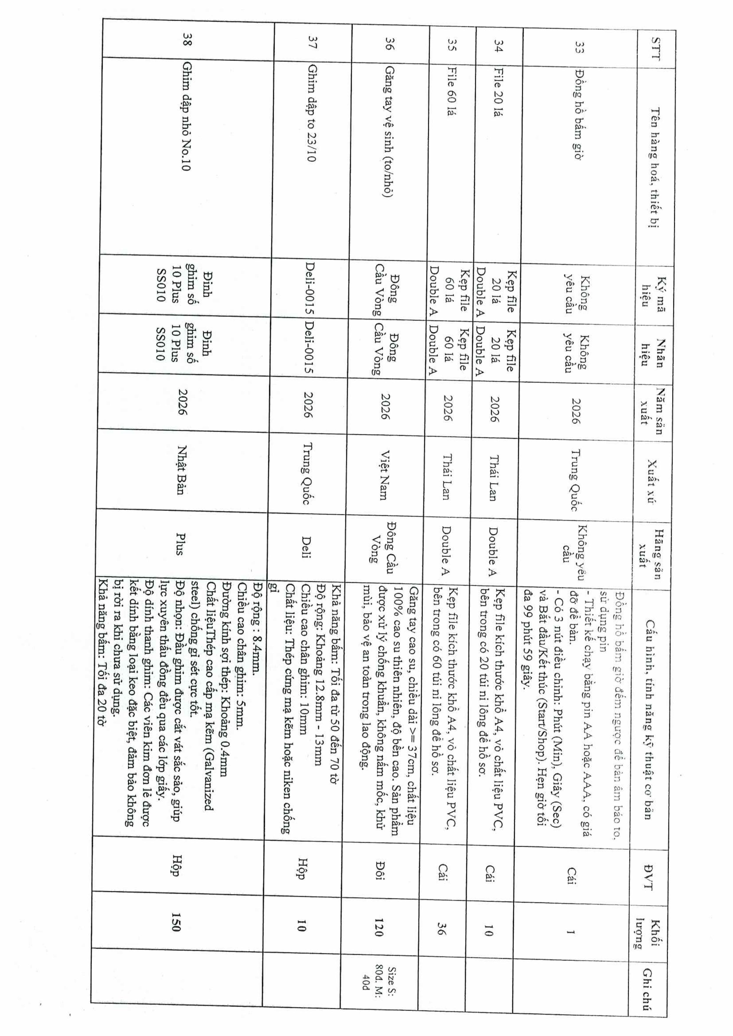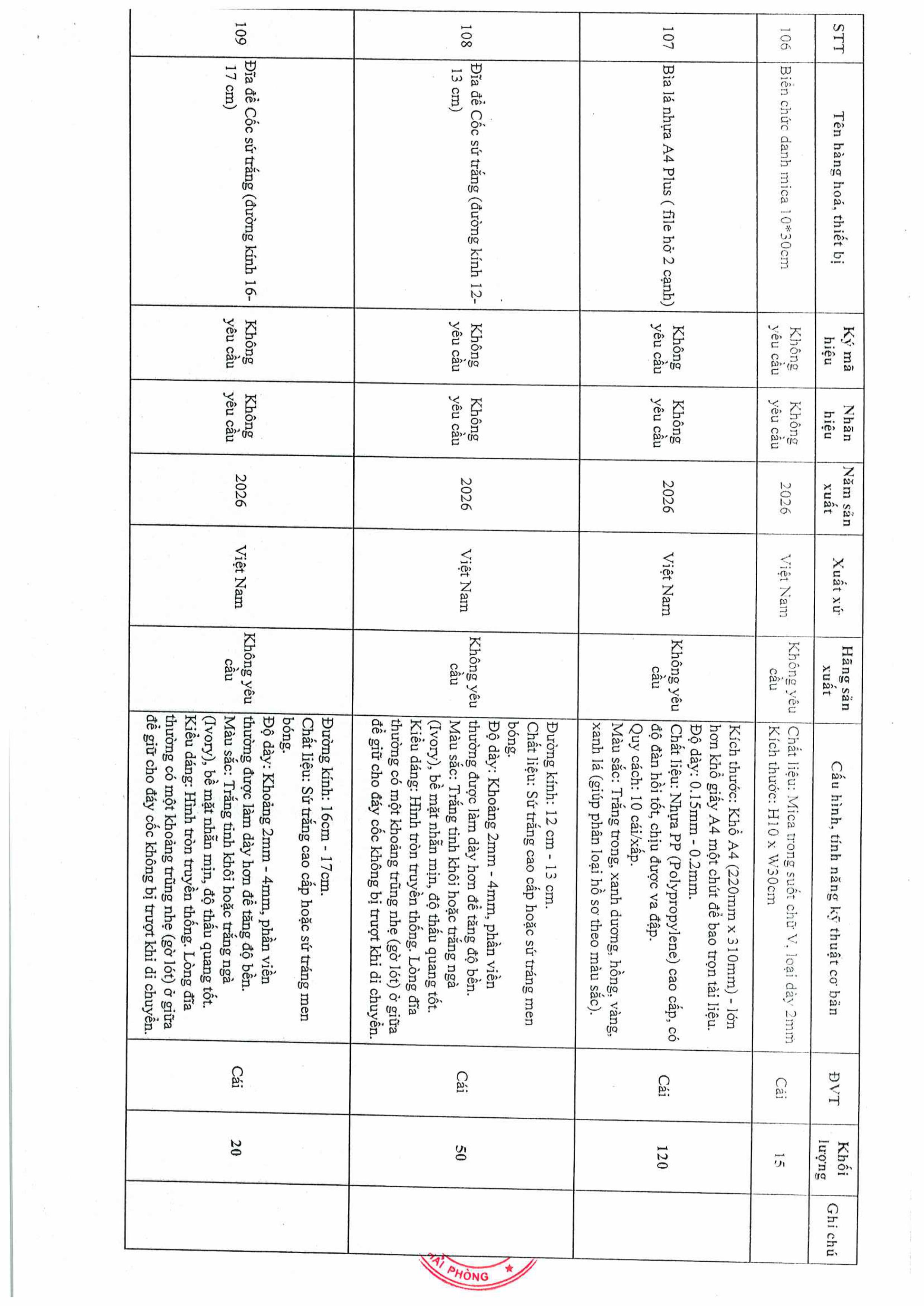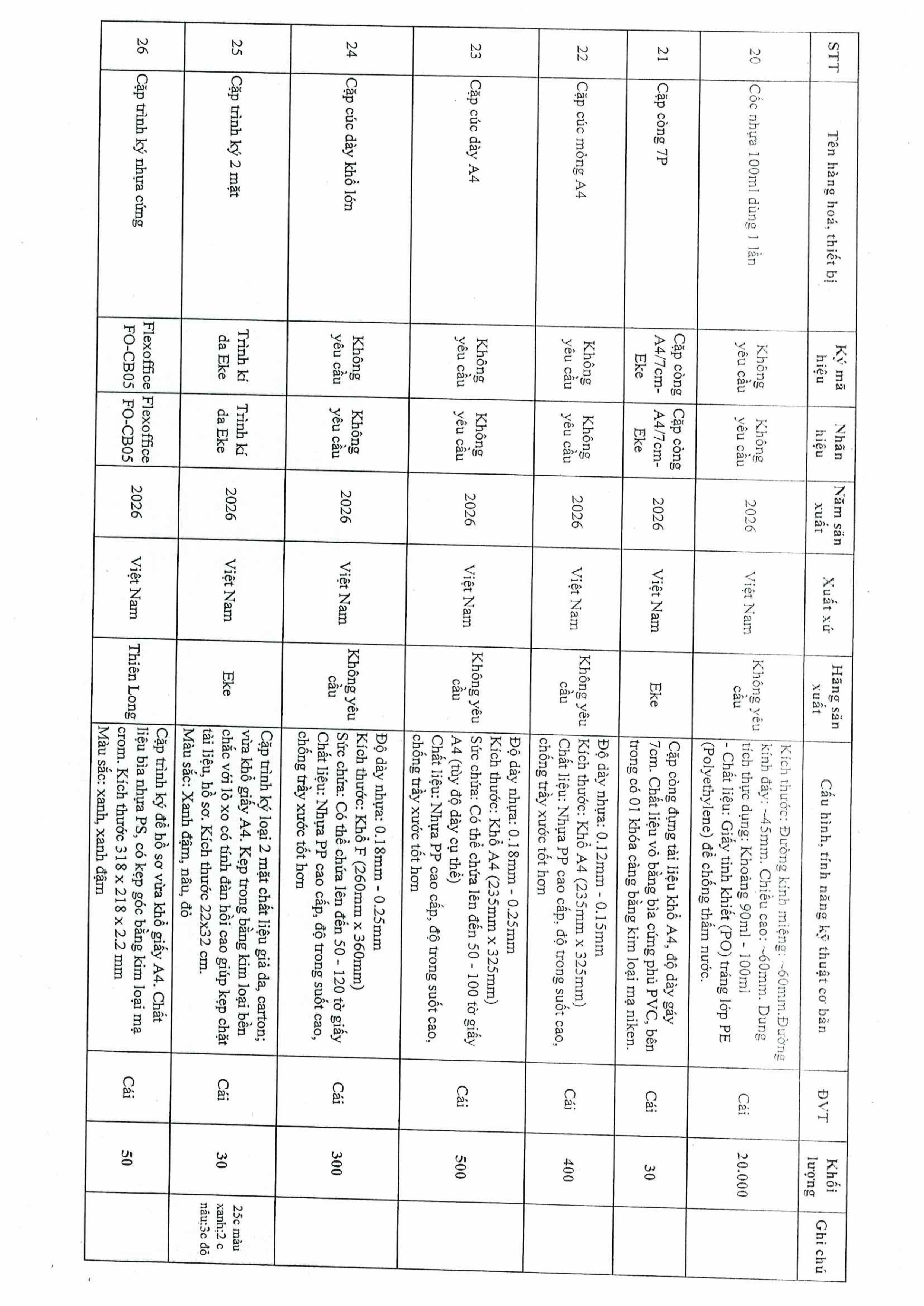 Thư mời chào giá gói thầu in file kẹp các cỡ